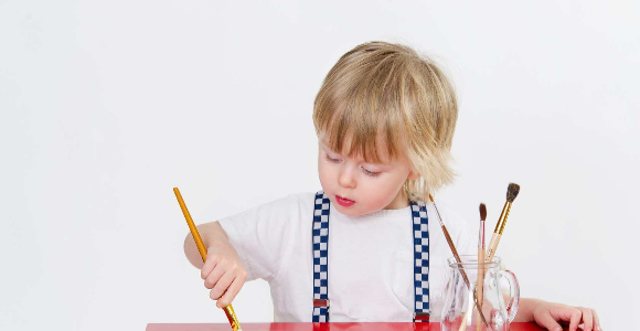 کودک، با ذوق نقاشی که کشیده را به مادر نشان می دهد. مادر به نقاشی او نگاه می کند و می گوید: «ببین، این جا را از خط بیرون کشیدی. مراقب باش که رنگ ها از خط بیرون نیاید. بعدشم، یکنواخت نقاشی کن. یک جا پررنگ و کم رنگ نباشه. دستت را اگر کمتر فشار بدهی، کمتر خط خط می شه».